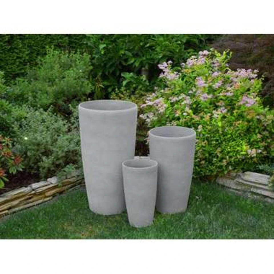Stijlvolle, slanke plantenbak in grijs, 42 cm hoog. Deze ronde, slanke plantenbak straalt een speciale elegantie uit met zijn hoge vorm en is hierdoor een absolute blikvanger! Zowel alleen in deze maat of gerangschikt in verschillende maten, zorgt het voor een bijzonder decoratief effect zowel binnen- als buitenshuis! Wanneer de bloempot in de tuin of op het terras wordt gebruikt, kan de gemarkeerde plek gemakkelijk worden doorboord zodat overtollig water makkelijk uit de pot kan stromen. Met een plug die bij de levering is inbegrepen, kan de opening indien nodig opnieuw worden gesloten. Het materiaal waaruit de plantenbak bestaat, is een mengsel van steen, polyresin en glasvezel. Deze materialen maken de bloempot robuust, resistent, UV-bestendig, gemakkelijk in onderhoud en weerbestendig, zelfs bij zeer hoge of zeer lage temperaturen.