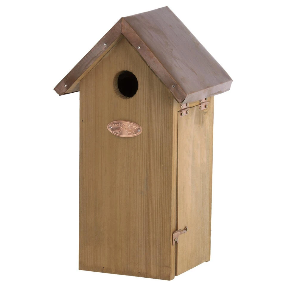 Houten vogelhuisje/nestkastje voor de koolmees met koperen dakje 30 cm.