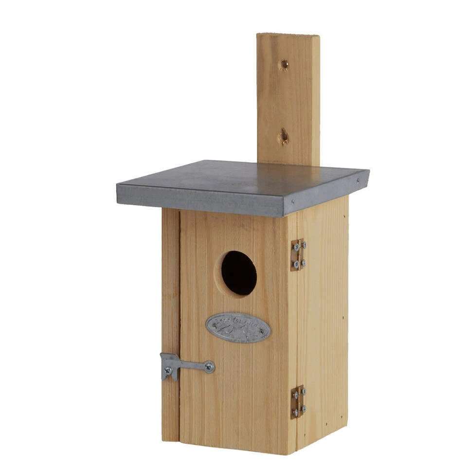 De nestkast is gemaakt van FSC 100% vurenhout. Het plat dakje is gemaakt van zink.