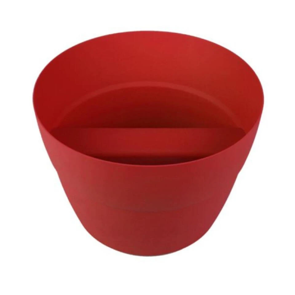 EDA Plantenpot voor balkon of railing, rood. Deze bloempot kan eenvoudig worden bevestigd aan een balkonreling. Afmetingen: diameter 30 cm x hoogte 21 cm. Inhoud: 8 liter. Materiaal: kunststof. Geschikt voor buiten gebruik.