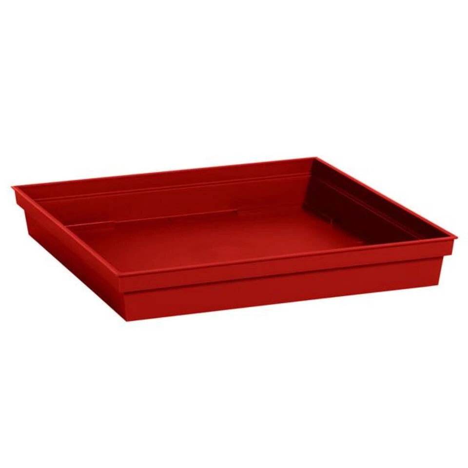 Bloempot onderschaal Toscane. De opvangschaal is geschikt voor een vierkante plantenpot met een afmeting van L32 x B32 cm. Afmetingen schaal: L27 x B27 x H4 cm. Materiaal: kunststof. Kleur: rood.