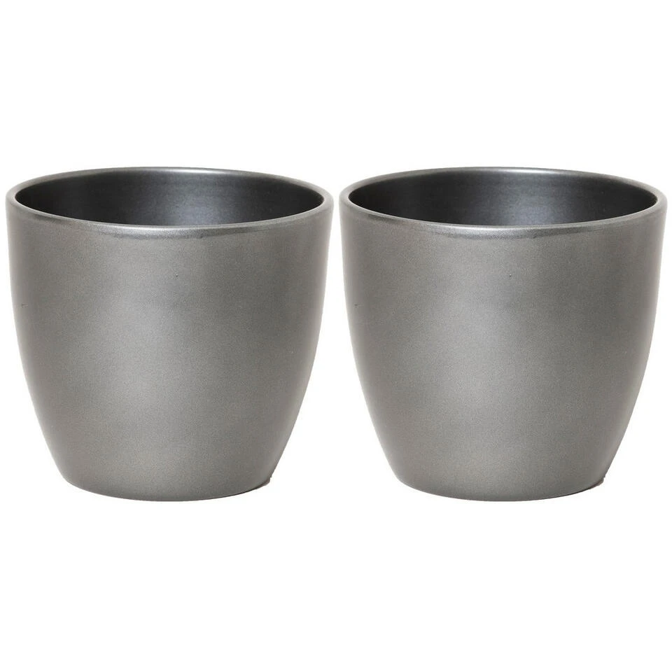 Floran Bloempot – Zilverkleurig – Metallic – Keramiek – 22 X 19 Cm