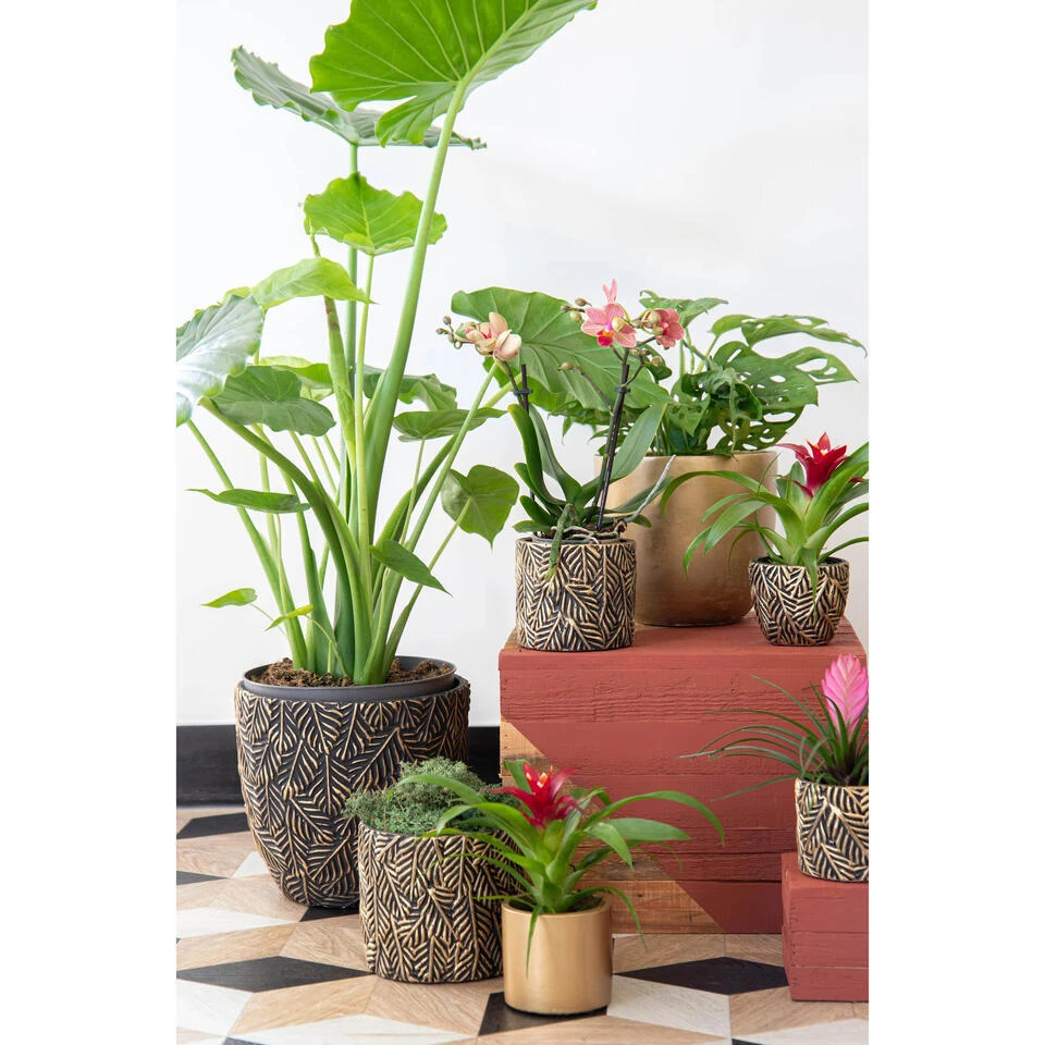 Mega Collections Plantenpot – Keramiek – Antraciet/goud – D14 Cm