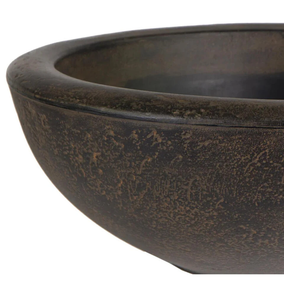 Plantenpot/bloempot schaal gemaakt van kunststof in roest bruin. Deze prachtige bloempot uit de Rinca Bowl serie voor buiten gebruik is een schitterende toevoeging aan uw tuin. De schaal is dubbelwandig met een rubberen dop aan de onderkant om het water weg te laten lopen. Voor buiten gebruik. Afmetingen: Diameter 53 cm en Hoogte 20 cm.