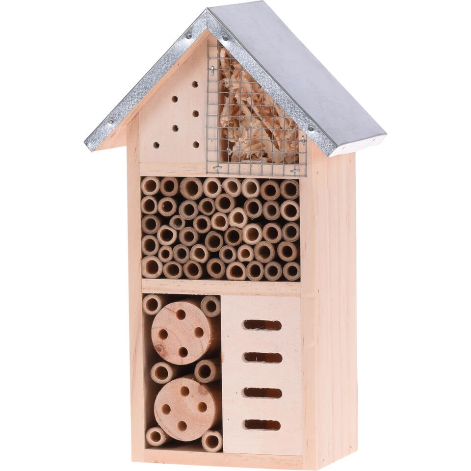 Merkloos Insectenhotel – Hout – Metalen Dak – 25 Cm