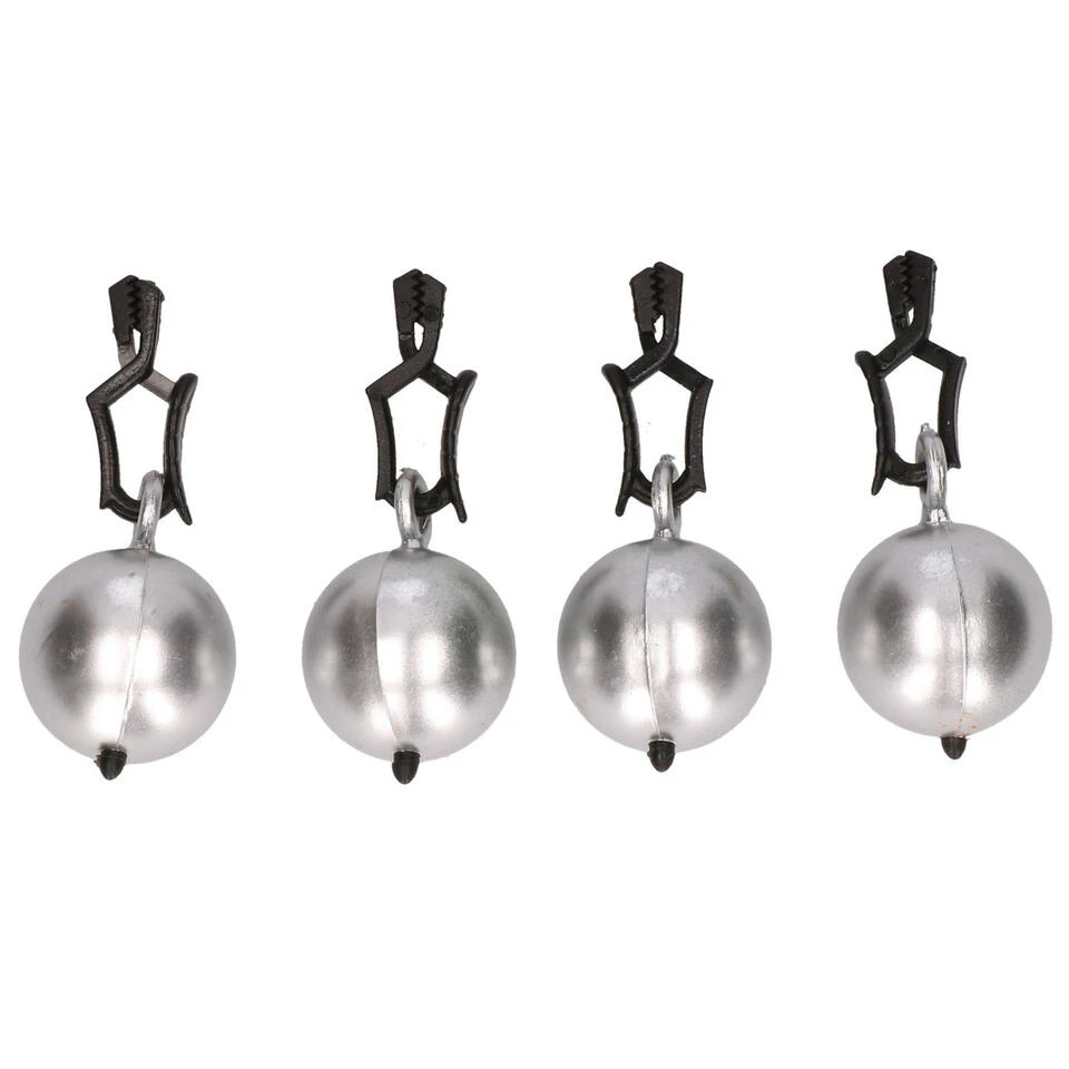 4x Tafelkleedgewichtjes zilveren kogels/ballen 3,5 cm. Set van 4 zilverkleurige tafelkleed/tafelzeil klemmen in de vorm van kogeltjes/balletjes. Deze hangers kunnen aan een tafelkleed/tafelzeil gehangen worden zodat deze niet weg kan waaien.