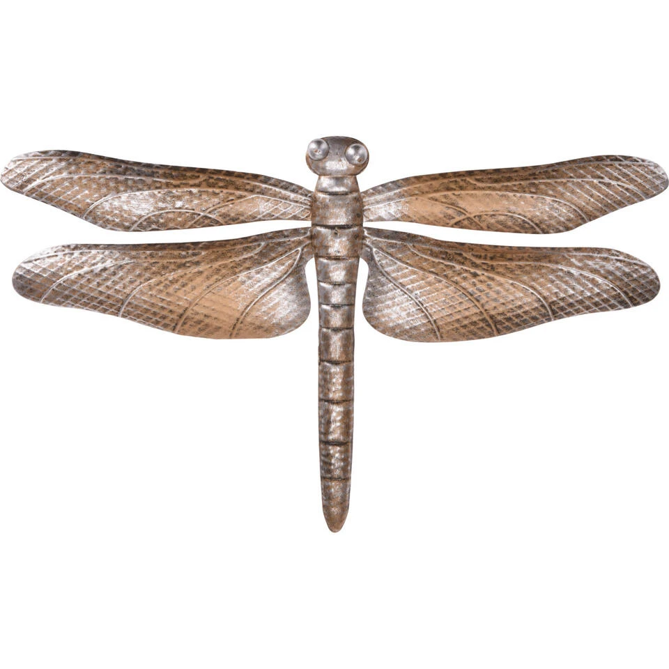 Merkloos Tuindecoratie Muur Libelle – Bronskleurig – Metaal – 46 Cm