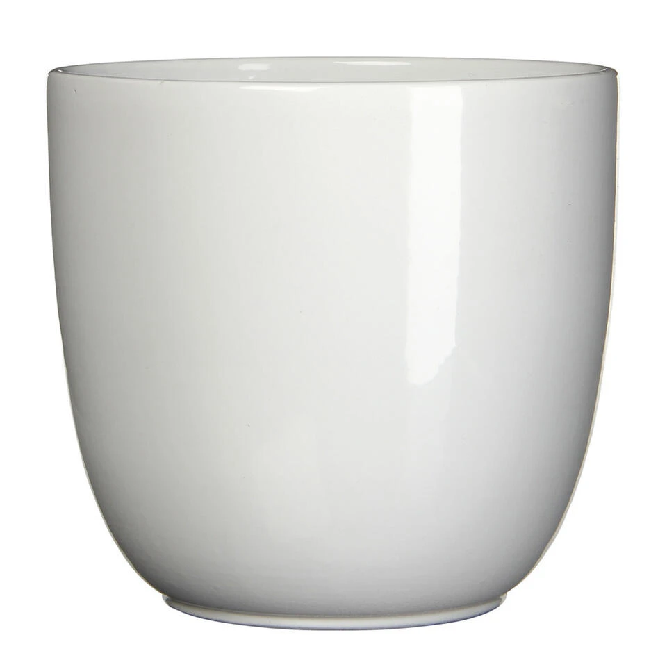 Bloempot in de kleur wit in een mooi glans motief keramiek voor een kamerplant H20 x D22.5 cm. Deze ronde bloempot uit de Tusca home basics serie past altijd goed in elke huis/interieur. Gemaakt van terracotta/keramiek. Diameter: 22.5 cm. Hoogte: 20 cm.