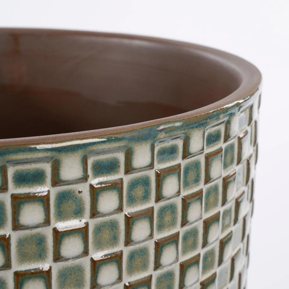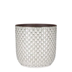 Bloempot Daan uit de collectie van Mica Decorations fleurt je interieur in een mum van tijd op. De keramieken pot is namelijk speels afgewerkt met een patroon van kleine vierkantjes. Erg mooi in combinatie met de subtiele glans! Daarnaast heeft de pot een frisse off white kleur die het vrolijke karakter alleen maar weet te versterken. Welke plant zet jij erin? De Daan potten zijn verkrijgbaar in verschillende kleuren en maten. Leuk om met elkaar te combineren! Deze bloempot is wit en heeft een afmeting van H20,5 x Ø21,5 cm.