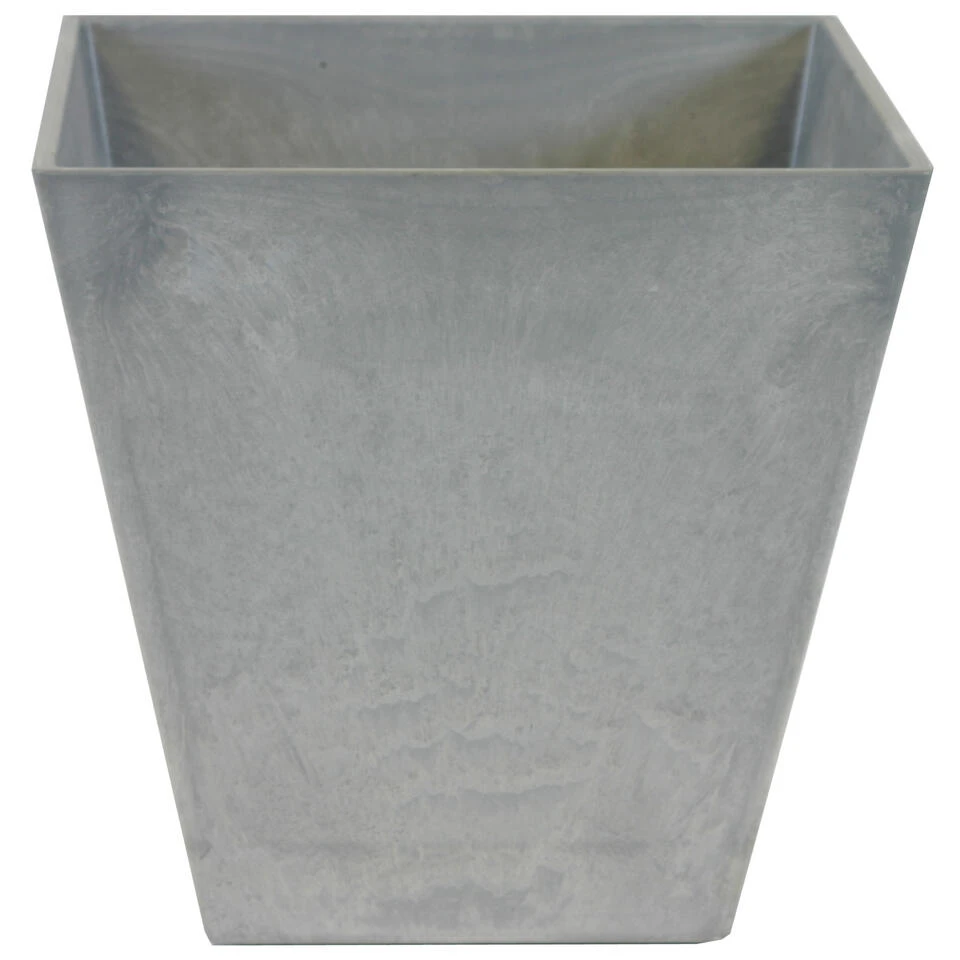Bloempot/plantenpot vierkant van gerecycled kunststof en steenpoeder in de kleur steengrijs/betonlook met diameter 40 cm en hoogte 40 cm. Artstone Ella serie potten voor buitenplanten, binnenplanten of kunstplanten. Een unieke duurzame mix van materialen dat nu geen afval is, maar een prachtige duurzame bloempot, 100% recyclebaar. Deze serie potten hebben een eigen drainagesysteem onderin de pot met water plug zodat ze geschikt zijn voor binnen en buiten.