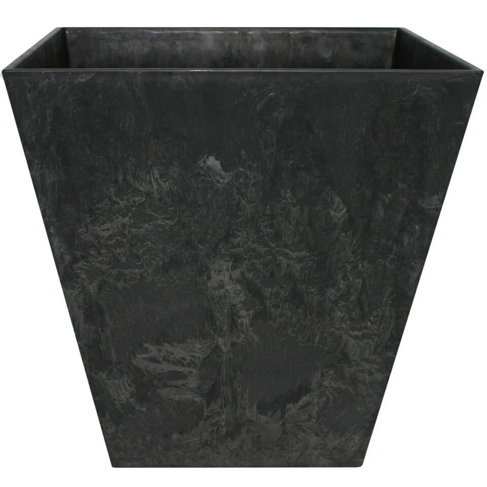 Bloempot/plantenpot vierkant van gerecycled kunststof en steenpoeder in de kleur zwart/betonlook met diameter 30 cm en hoogte 30 cm. Artstone Ella serie potten voor buitenplanten, binnenplanten of kunstplanten. Een unieke duurzame mix van materialen dat nu geen afval is, maar een prachtige duurzame bloempot, 100% recyclebaar. Deze serie potten hebben een eigen drainagesysteem onderin de pot met water plug zodat ze geschikt zijn voor binnen en buiten.