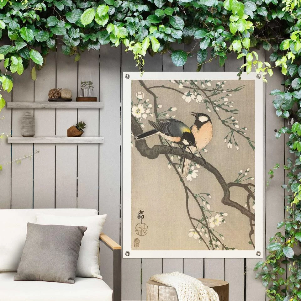 Tuinposter Ohara Koson Koolmezen Op Bloesemtak 80×60 Cm Beige
