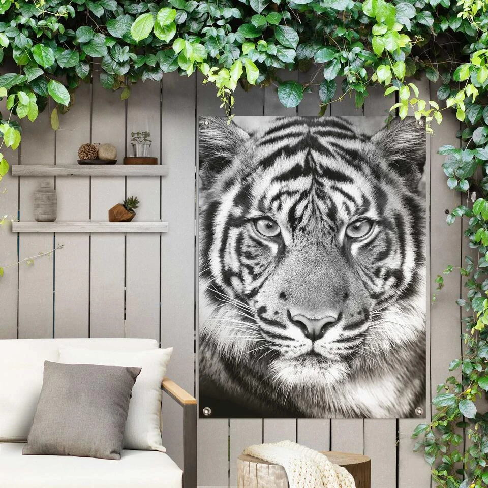 Tuinposter Tijger 80×60 Cm Zwart-Wit